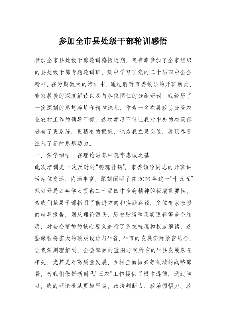 参加全市县处级干部轮训感悟