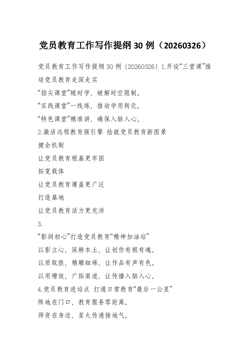 首页工作文档党员教育工作写作提纲30例(20260326)