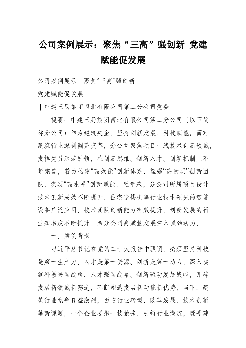 首页精选范文公司案例展示:聚焦“三高”强创新 党建赋能促发展