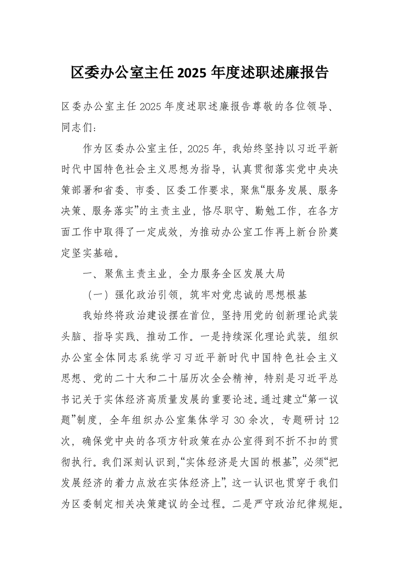 首页工作文档区委办公室主任2025年度述职述廉报告