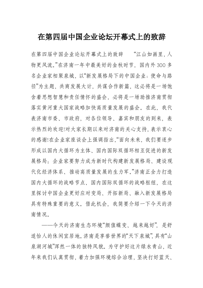 首页精选范文在第四届中国企业论坛开幕式上的致辞