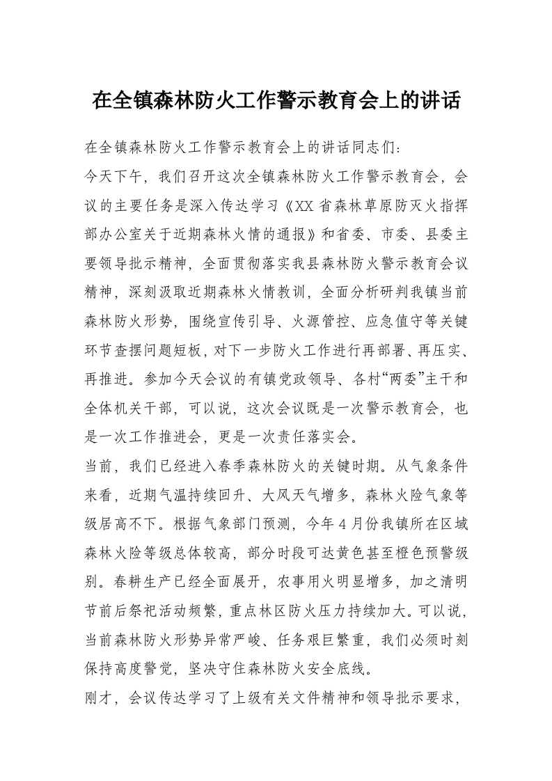 首页工作文档在全镇森林防火工作警示教育会上的讲话