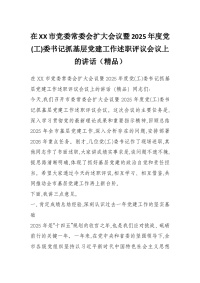 在XX市党委常委会扩大会议暨2025年度党(工)委书记抓基层党建工作述职评议会议上的讲话(精品)