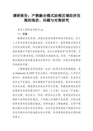 :产教融合模式助推区域经济发展的现状、问题与对策研究