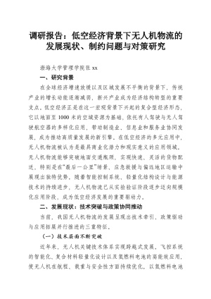 :低空经济背景下无人机物流的发展现状、制约问题与对策研究