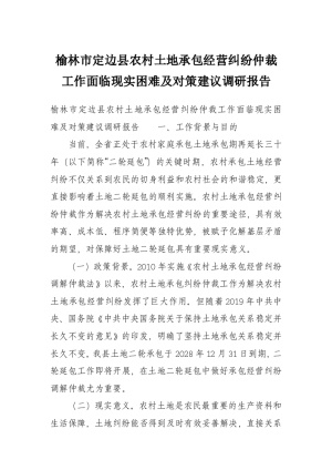 榆林市定边县农村土地承包经营纠纷仲裁工作面临现实困难及对策建议